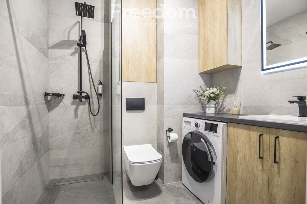 kabinę z prysznicem. Kuchnia z nowoczesną zabudową z niezbędnym