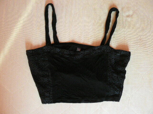Do sprzedania uzywany,krotki czarny top na ramiaczkach Pimkie,rozmiar M.Szerokosc ok.34 cm,dlugosc ok.19 cm,dlugosc z ...