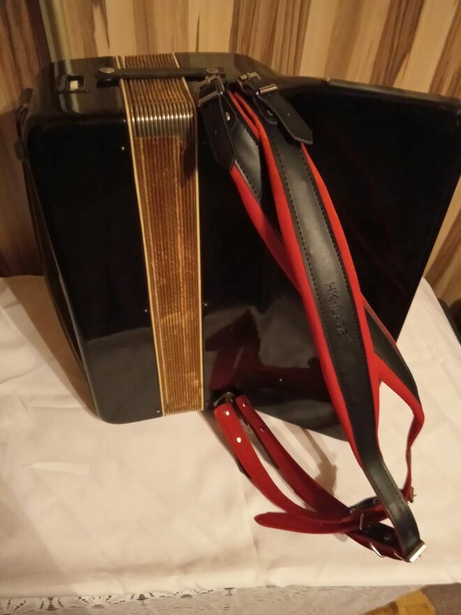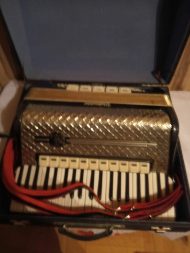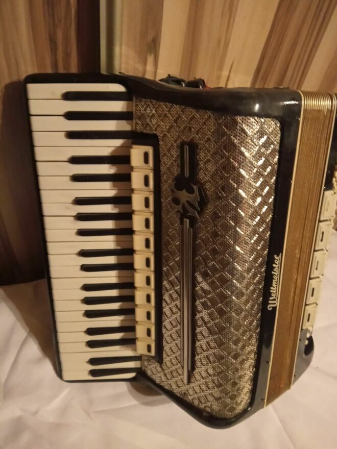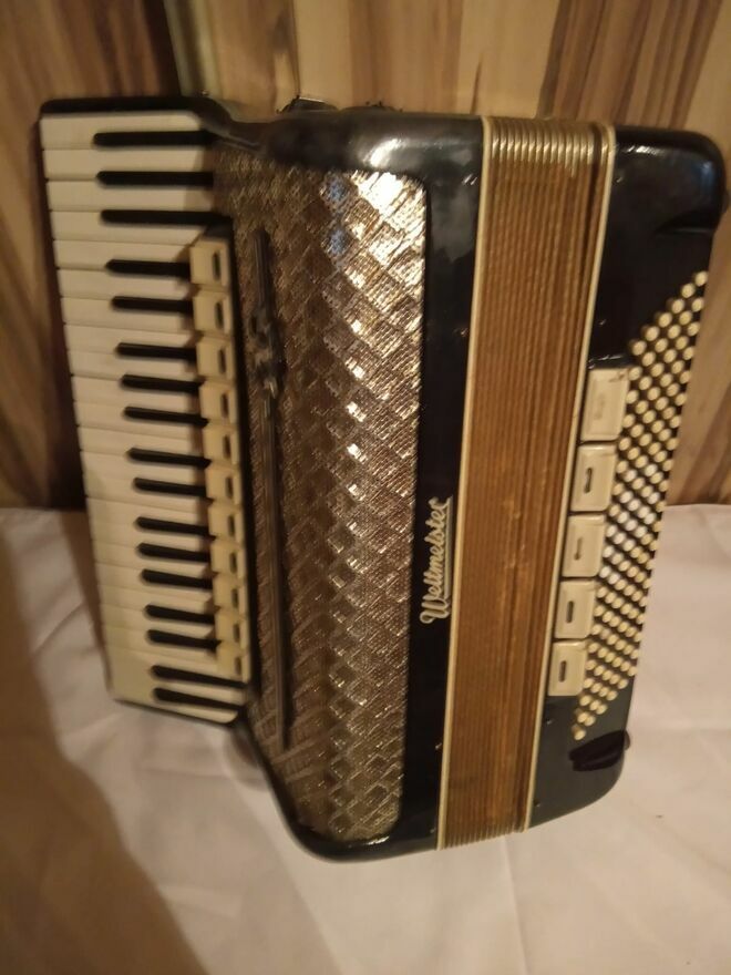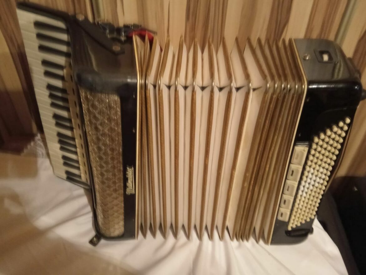 Do sprzedania akordeon Weltmeister Gigantilli V z futerałem120 basów, 4 chóry, 5 registrów basowych, 11 registrów melodycznych klawiatura.