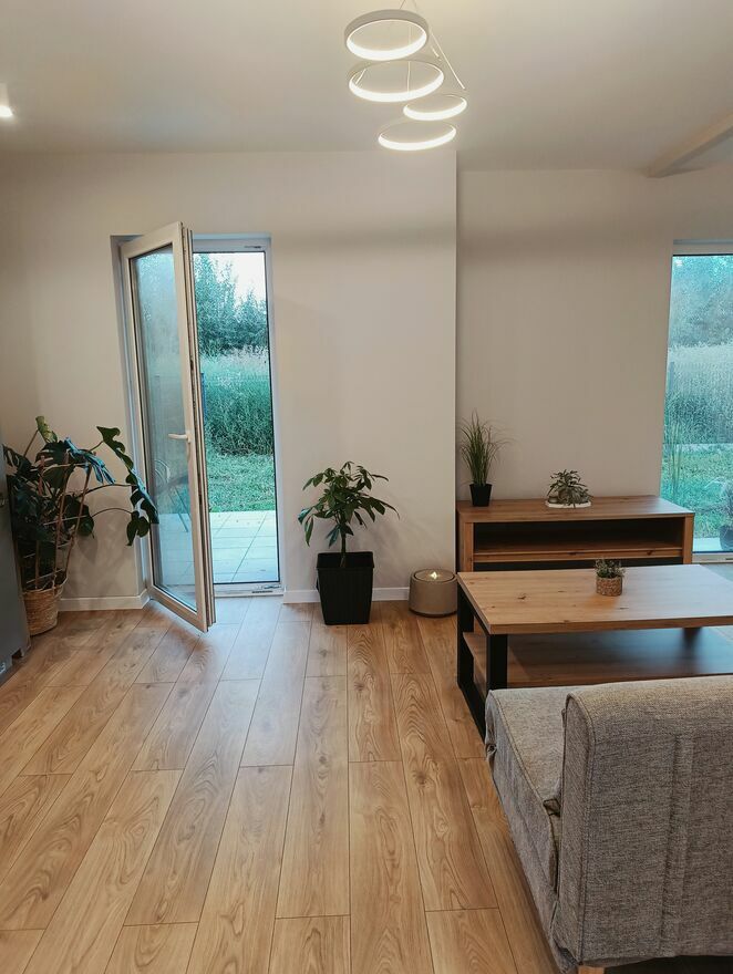 - Salon z aneksem kuchennym z wyjściem na taras/ogród