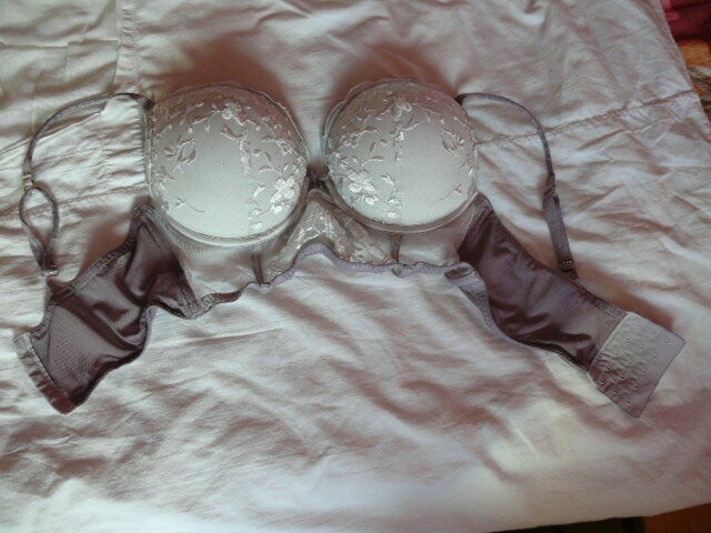 Do sprzedania uzywany biustonosz Primark,w kolorze bialo-fioletowym,z usztywnianymi dolami miseczek oraz 3 mozliwosciami regulacji obwodu pod biustem.cvv