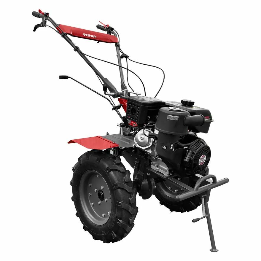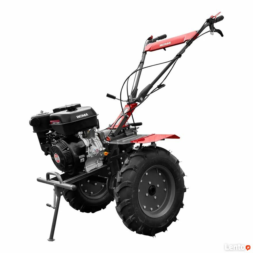 Ciągnik jednoosiowy Weima WM1100F-6 wyposażona w 2+1+1 wirnikowych maszyn uprawowych o szerokości roboczej 135 cm, może obsługiwać szeroką gamę osprzętu, w tym kosiarkę rotacyjną i glebogryzarkę. Za pomocą wozu transportowego można również kosić trawę przeznaczoną do produkcji siana. Ale to nie wszystko, ten model jest również wszechstronny - łopatę można wykorzystać do odśnieżania.Weima WM1100F-6 przeznaczona jest do intensywnej i długotrwałej pracy. Ciągnik prowadzący jest wyposażony w profesjonalny silnik benzynowy Weima WM188F, który cieszy się dobrą opinią ze względu na swoją funkcjonalność i wysoką wydajność. Jego główną różnicą jest niskie zużycie paliwa oraz fakt, że nie boi się długotrwałej pracy przy dużych prędkościach. W celu uproszczenia uruchamiania ciągnika z operatorem prowadzącym silnik jest wyposażony w rozrusznik elektryczny.