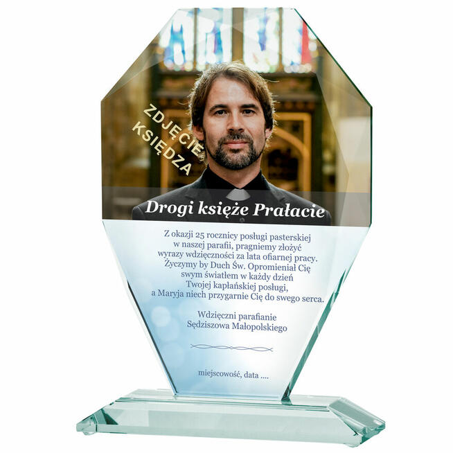 MODEL WZORU G007_MP_32 Personalizowany prezent dla księdza na dowolną okazję Szklana statuetka z personalizacją to ...