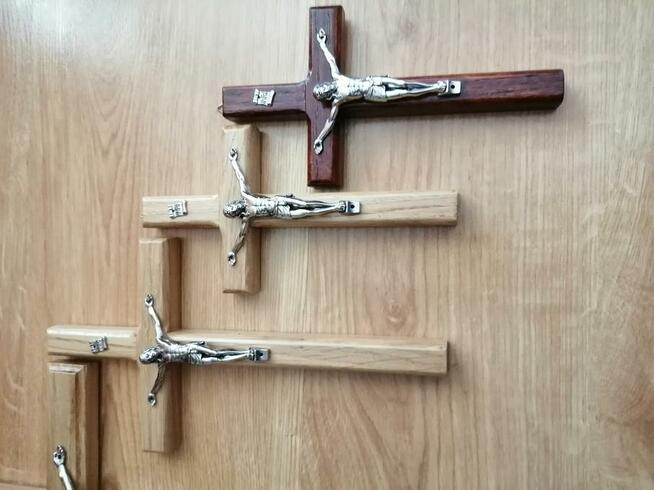 Posiadam krzyże drewniane/sezonowany dąb / wymiary: 18cm.wysokosc,szer. 9.5cm. Wizerunek Pana Jezusa wys. 7.5cm. Bardzo ...
