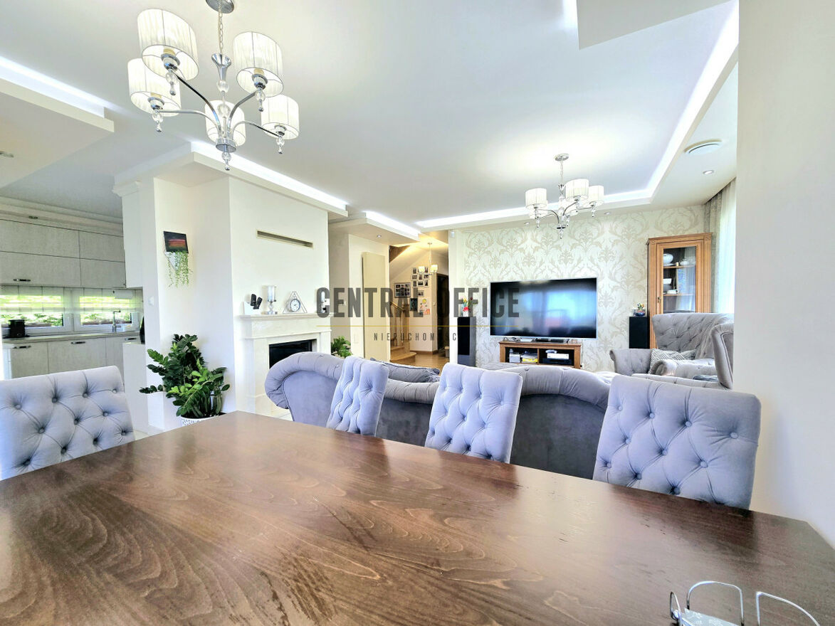 - salon: piękny zestaw wypoczynkowy, stół z 10 krzesłami, witryny
