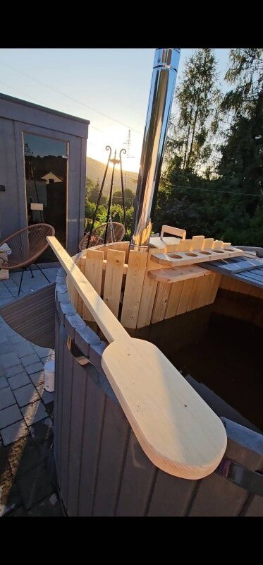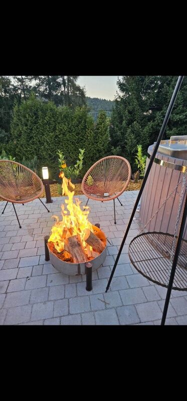 Na zagospodarowanej działce znajdziesz balię, miejsce na odpoczynek oraz mini-strefę SPA. Idealne tło do wieczorów pod gwiazdami.