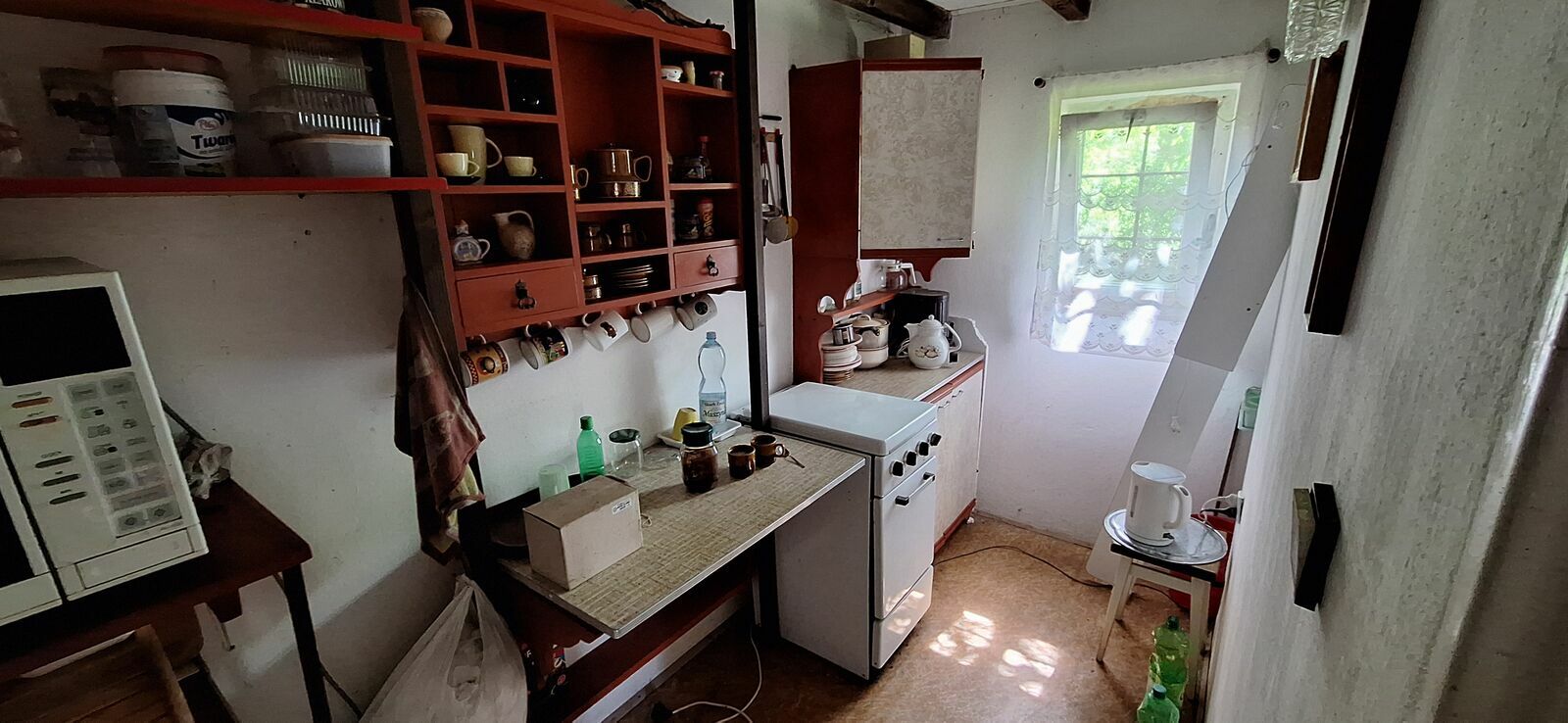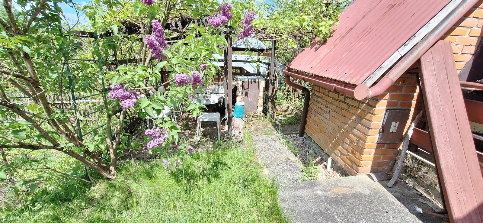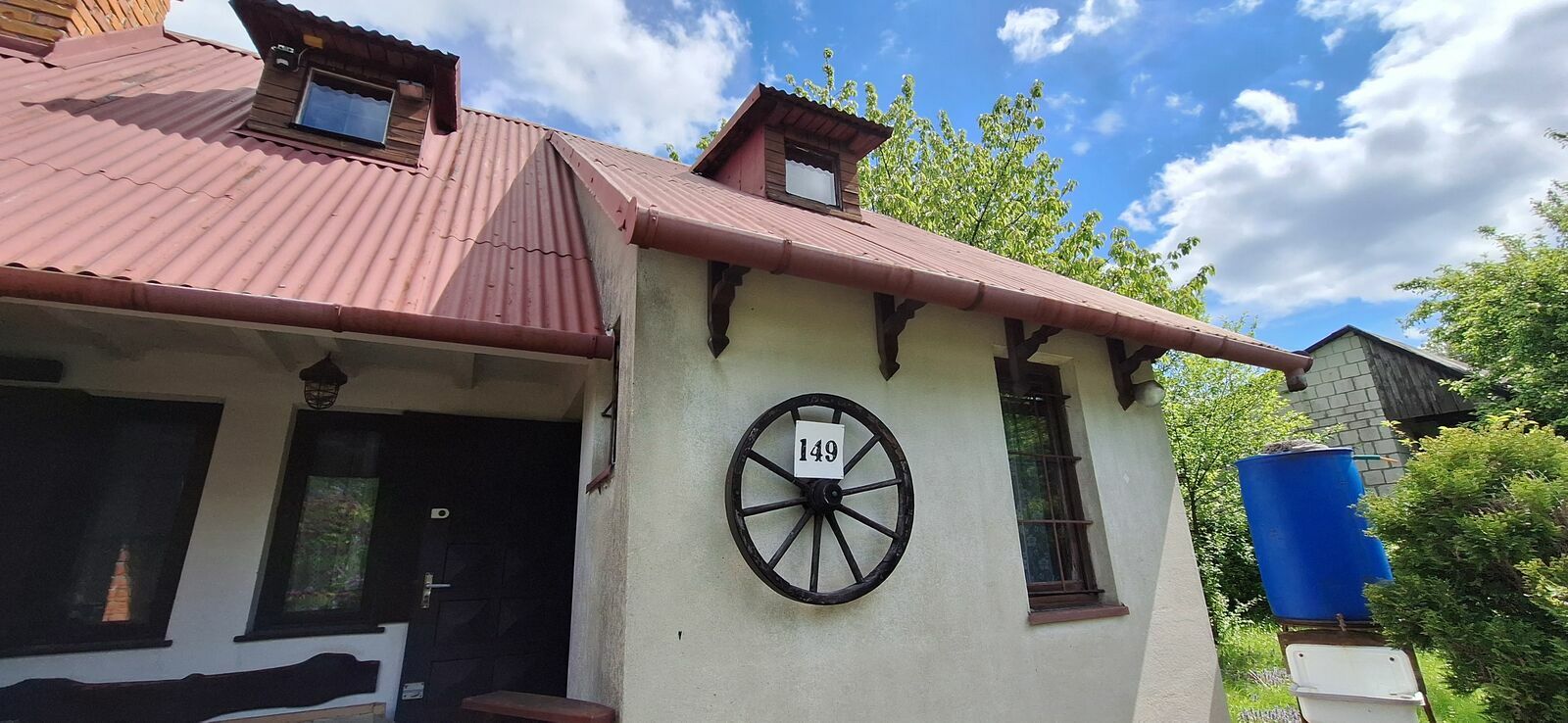 Do budynku dobudowana jest łazienka oraz pomieszczenie na urządzenia (kosiarki drabiny, i bardzo dużo narzędzi do prac domowych)
