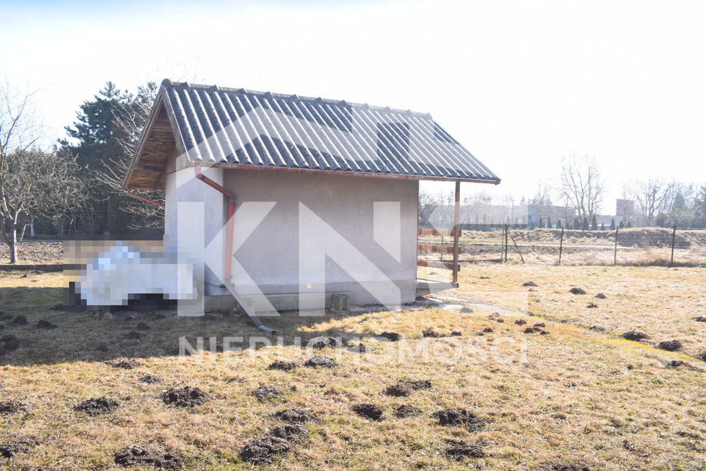 woda, kanalizacja na działce. Teren płaski, ogrodzony siatką.