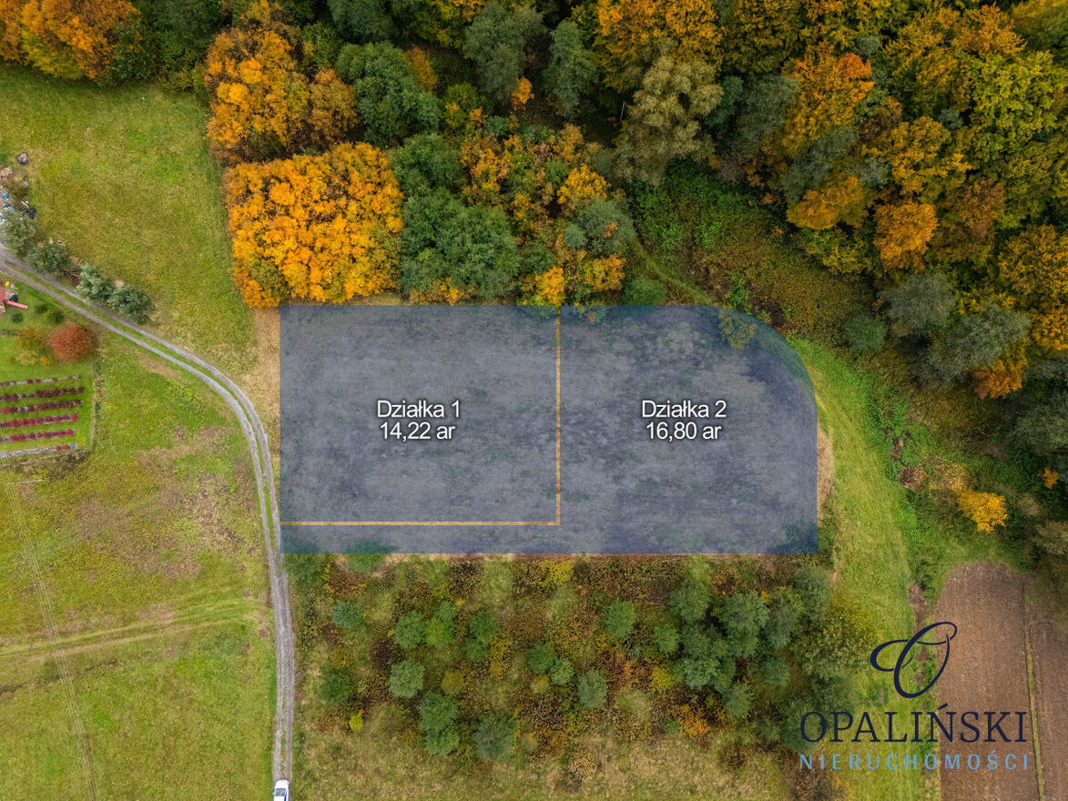 Plan podziału na osobne działki, dla każdej wydane osobne warunki zabudowy na dom jednorodzinny. Możliwość zakupu działki obok o pow. 14,22 ar.