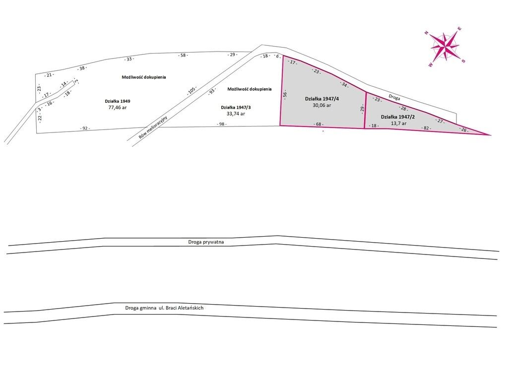 działek przyległych o numerach 1947/3 oraz 1949, co pozwala na