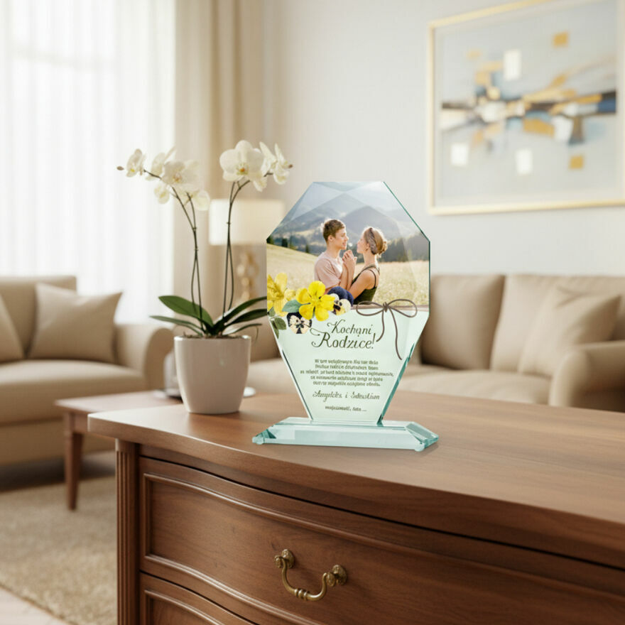 Elegancka statuetka szklana z kolorowym nadrukiem to wyjątkowy prezent, który pozwala zachować w pamięci najważniejsze chwile. Dzięki personalizacji staje się niepowtarzalnym podziękowaniem dla Rodziców, Świadków, Chrzestnych lub Dziadków. Idealnie sprawdza się podczas uroczystości ślubnych, będąc wzruszającym symbolem wdzięczności za obecność i wsparcie.