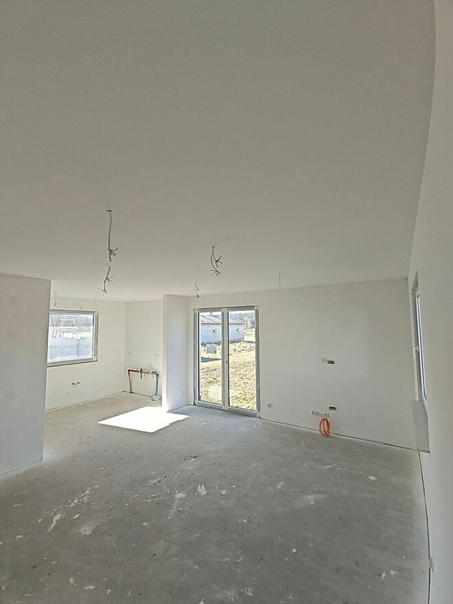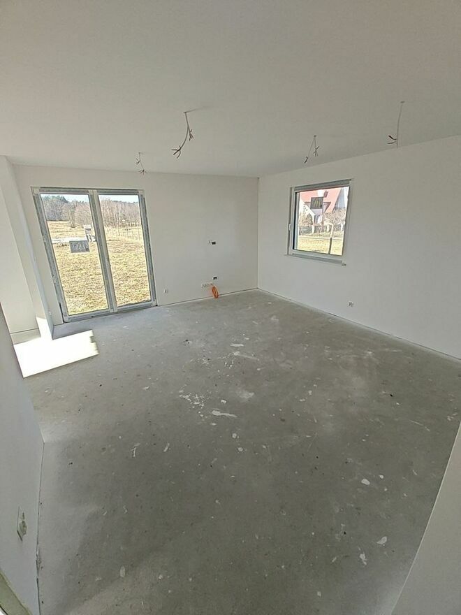 Dom sprzedawany w stanie deweloperskim plus, kompletny z elewacją, doprowadzonymi mediami, wylewkami betonowymi, pełną elektryką i instalacjami gotowymi do montażu: klimatyzacja, domofon, instalacja pod PV, komin pod kominek.