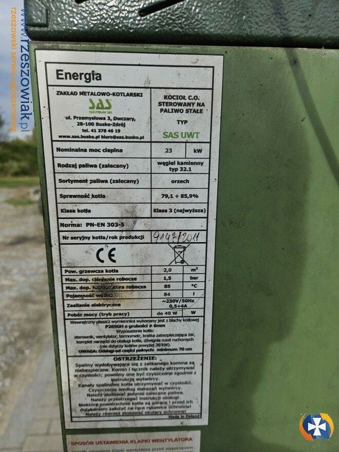 kocioł SAS 23kW z demontażu, sprawny, tabliczka znamionowa na zdjęciuSprawdź zainteresowanie tym ogłoszeniem