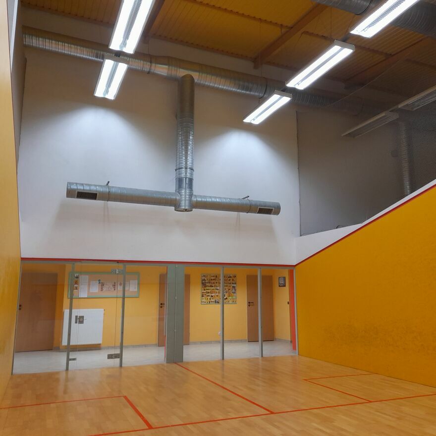 Na parterze są trzy korty do gry w squasha, miejsce na siłownię, pomieszczenie na saunę, toaleta, 2 pomieszczenia na dowolne przeznaczenie, łazienka z prysznicem i WC, pomieszczenie techniczne i kotłownia. Powierzchnia ta, ze względu na dużą wysokość pomieszczeń ( 6m) może być wykorzystana na każdą inną działalność gospodarczą lub wykorzystana prywatnie jako powierzchnia uzupełniająca. Budynek ma centralne ogrzewanie gazowe.
