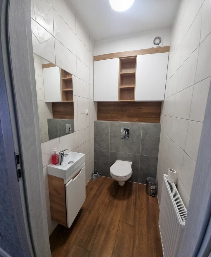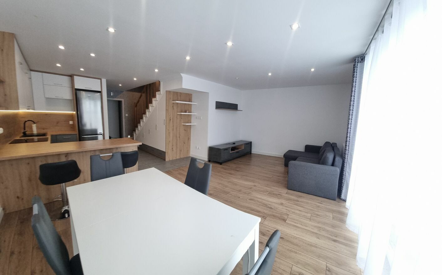 Szeregówka wykończona w nowoczesnym stylu oraz jasnej przyjemnej kolorystyce. Nieruchomość ogrzewana własnym piecem gazowym dwufunkcyjnym dodatkowo ogrzewanie podłogowe w holu ,kuchni oraz łazienkach.