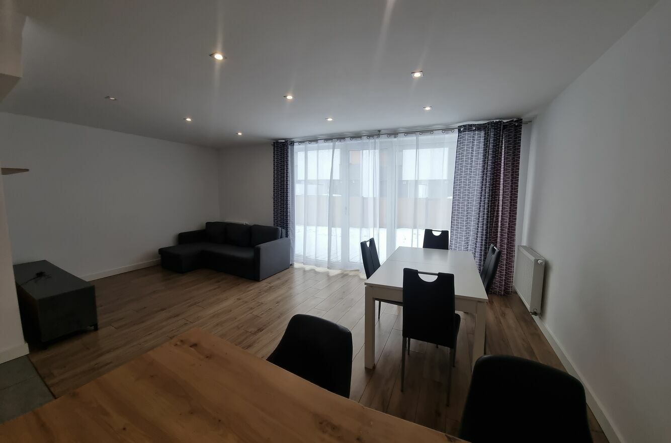Szeregówka nowoczesna z funkcjonalnym oraz dobrze przemyślanym rozmieszczeniem powierzchni , przestronnym tarasem o pow 17,34 m2 , ogrodem oraz podjazdem na 2 samochody.