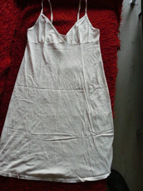 Do sprzedania uzywana koszula nocna,w kolorze bialym.Wymiary w stanie lezacym na plasko:szerokosc u dolu 60 cm,szerokosc pod biustem 36 cm,dlugosc calkowita (z ramiaczkami) 92 cm.vvt