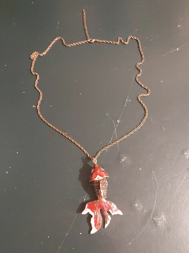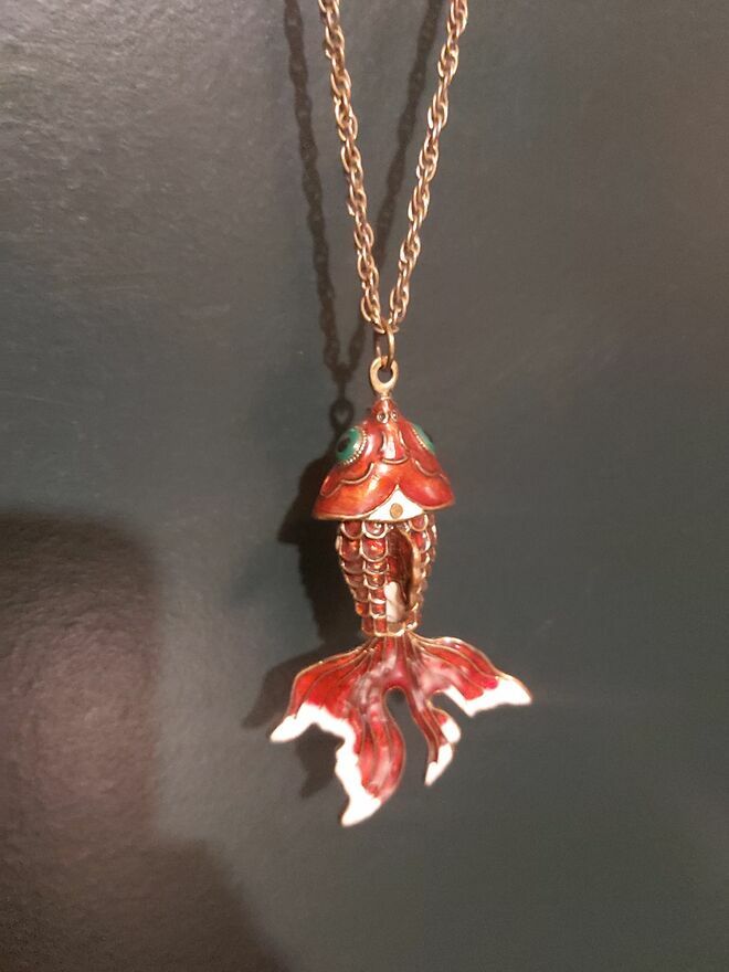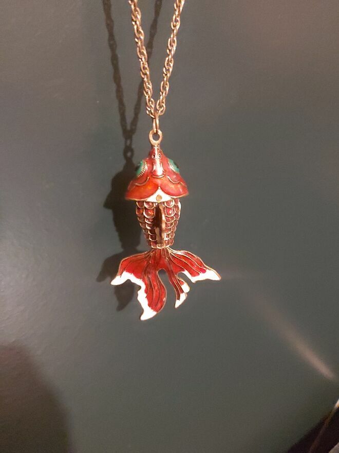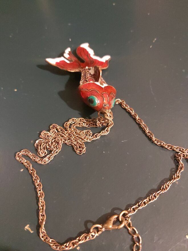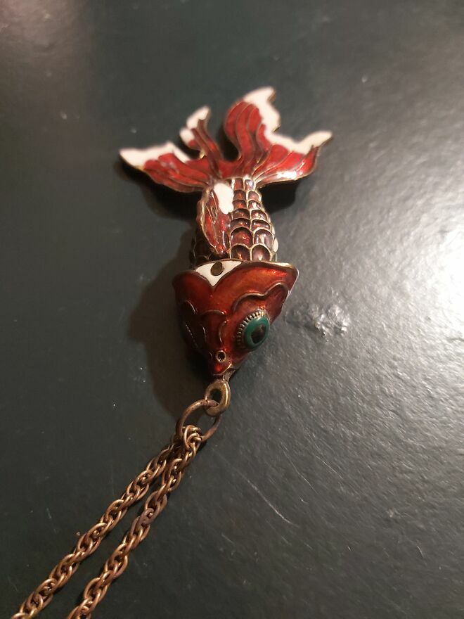 Kultowa RUCHOMA ZŁOTA RYBKA Cloisonné – Unikalny Vintage