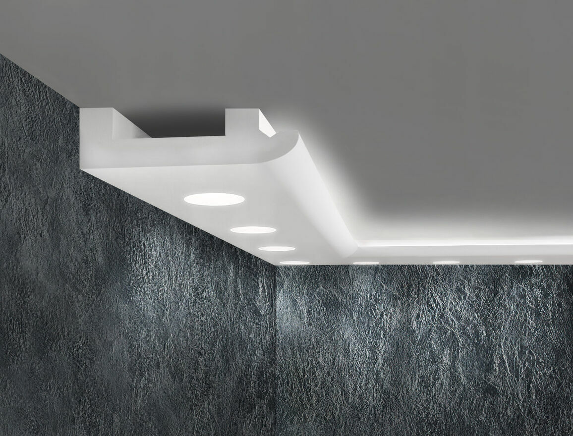 Gzyms halogenowy to ozdobny profil, który stanowi doskonała alternatywę dla klasycznie podwieszanych sufitów. Został stworzony z myślą o montażu halogenów. W naszej ofercie znajdą Państwo szeroki wybór modeli. Wykonujemy wzory zarówno klasyczne jak i o nowoczesnych kształtach. Dzięki temu takie elementy znajdą zastosowanie w każdym wnętrzu. Produkt został przygotowany do pomalowania wybraną farbą wewnętrzna niezawierającą rozpuszczalników.Model: GH 05