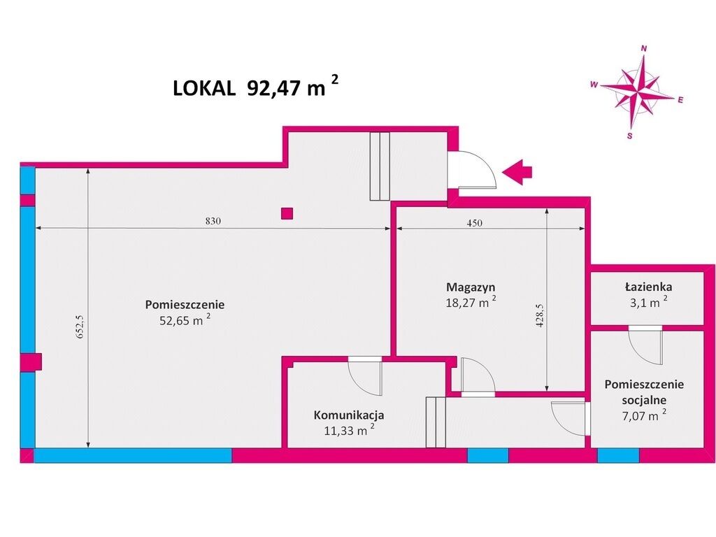 Na sprzedaż lokal użytkowy o powierzchni 92,47 m², położony na