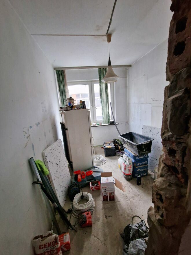 Zdjęcia przedstawiają mieszkanie zarówno przed remontem jak i w trakcie remontu.