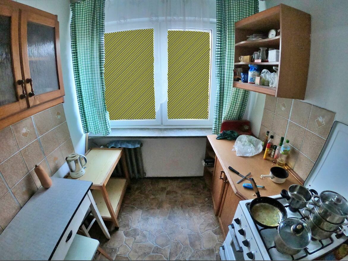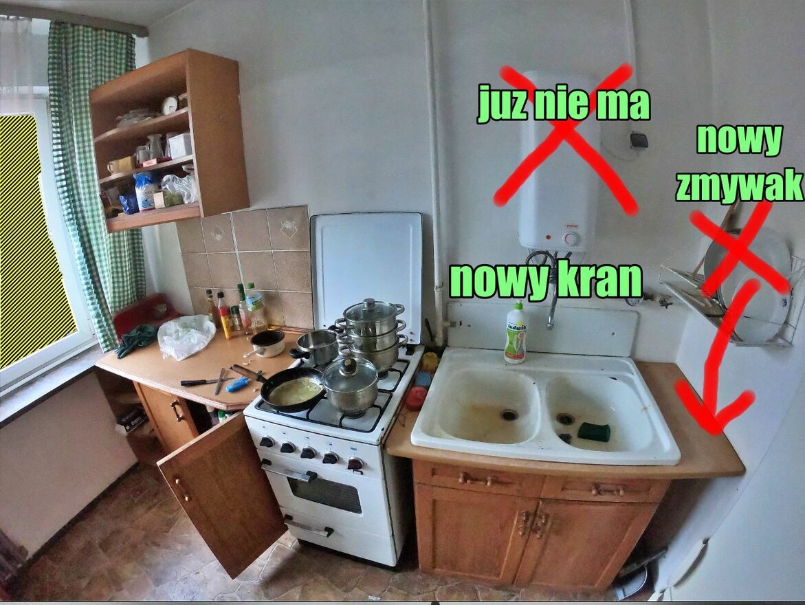 - brak kuchni (wyniesione wszystkie sprzęty i meble, zdarta wykładzina)
