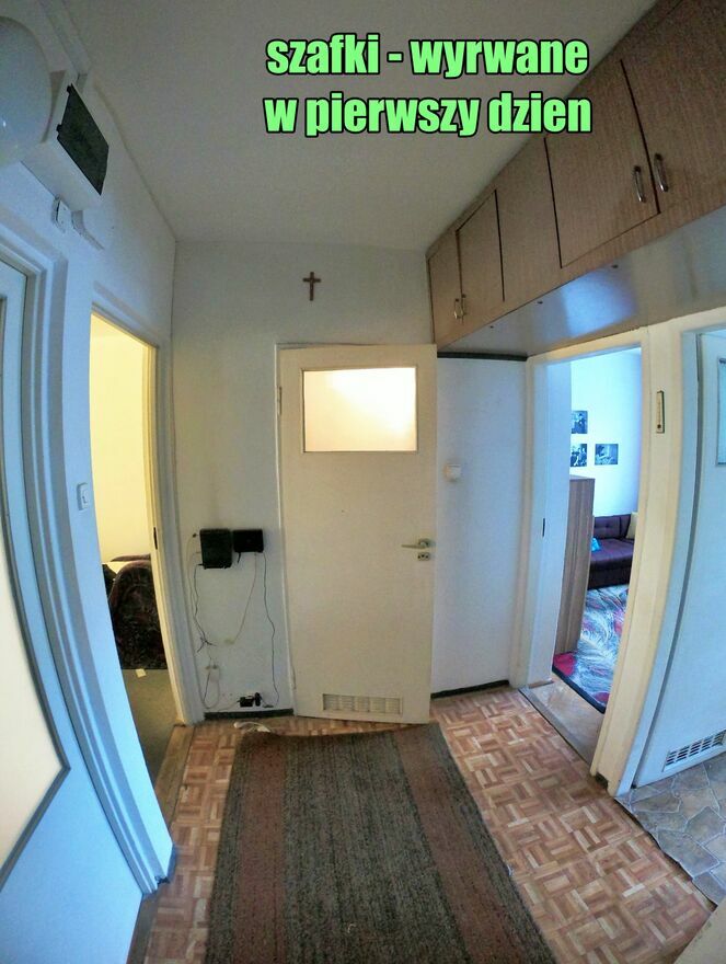 - z przedpokoju zdarta wykładzina i usunięte meble