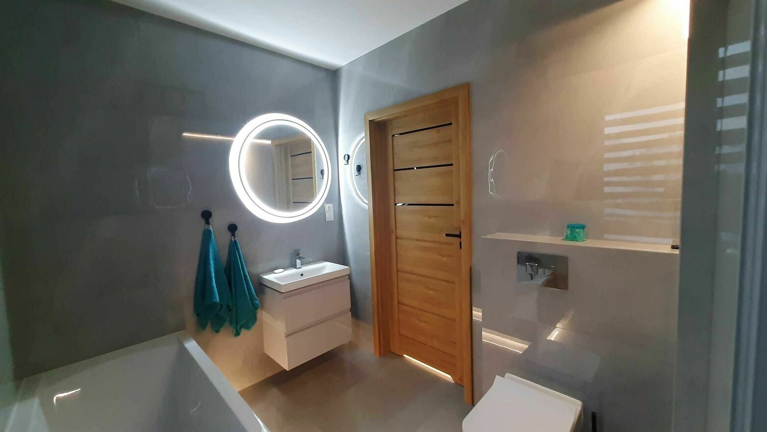 We wszystkich pomieszczeniach płytki na podłodze. Bardzo łatwe w utrzymaniu czystości.