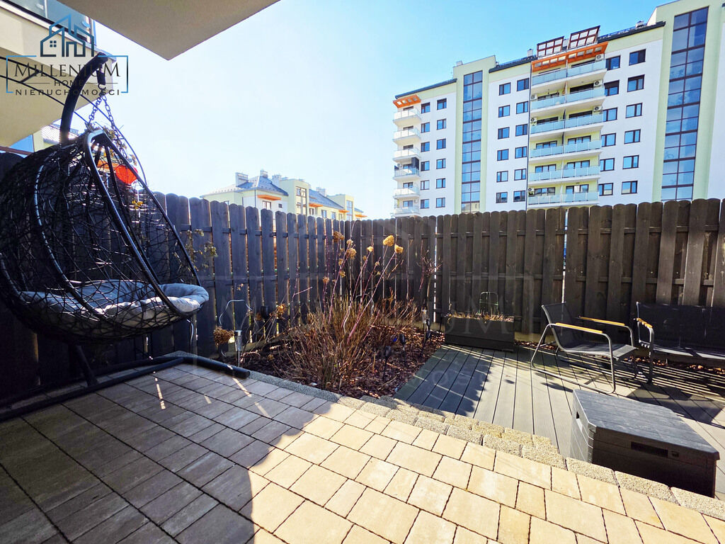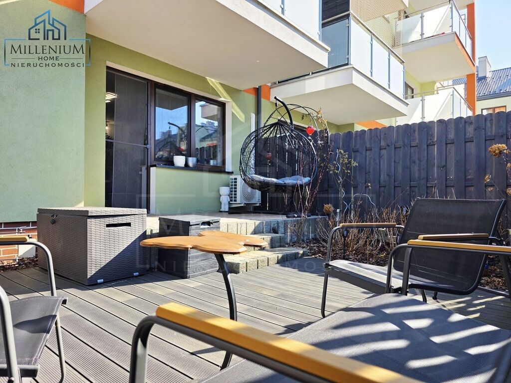 W ofercie biura Millenium Home Nieruchomości na sprzedaż nowoczesnei w pełni wyposażone mieszkanie z ogródkiem, zlokalizowane w