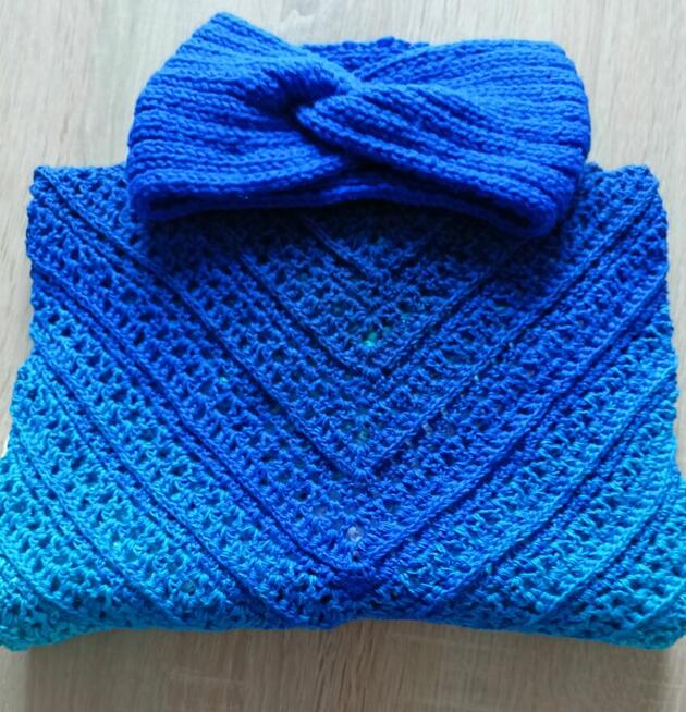 Chusta z włóczki bawełna i akryl o wym 70cmx140cm + opaska