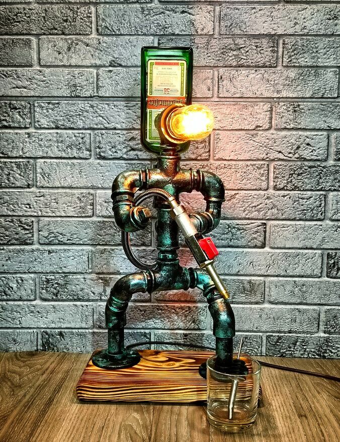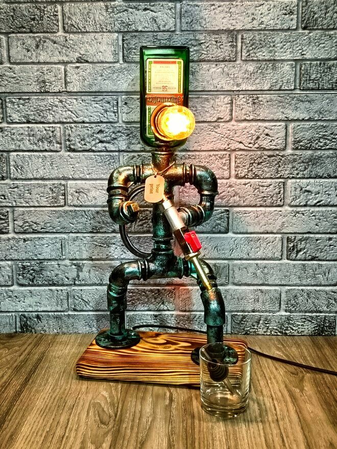 WitamSprzedam figurę-dozownik do napojów, nalewak do alkoholu wykonany z armatury hydraulicznej w połączeniu z drewnem. Produkt ten może służyć nie tylko jako dozownik do alkoholu lecz także jako funkcjonalna dekoracja, idealnie wpasowująca się w domowy kącik barmański czy np. industrialny wystrój wnętrza. Jest to wyjątkowy gadżet, który z pewnością sprawdzi się w roli kreatywnego prezentu.