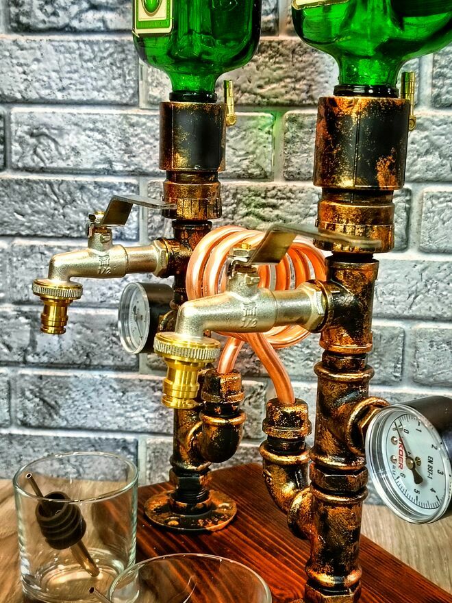 Świetny gadżet na każdą okazję, idealny na prezent.Idealny na prezent, upominek dla Panów, wykonany z mosiężnych złączek hydraulicznych w połączeniu z naturalnym drewnem.