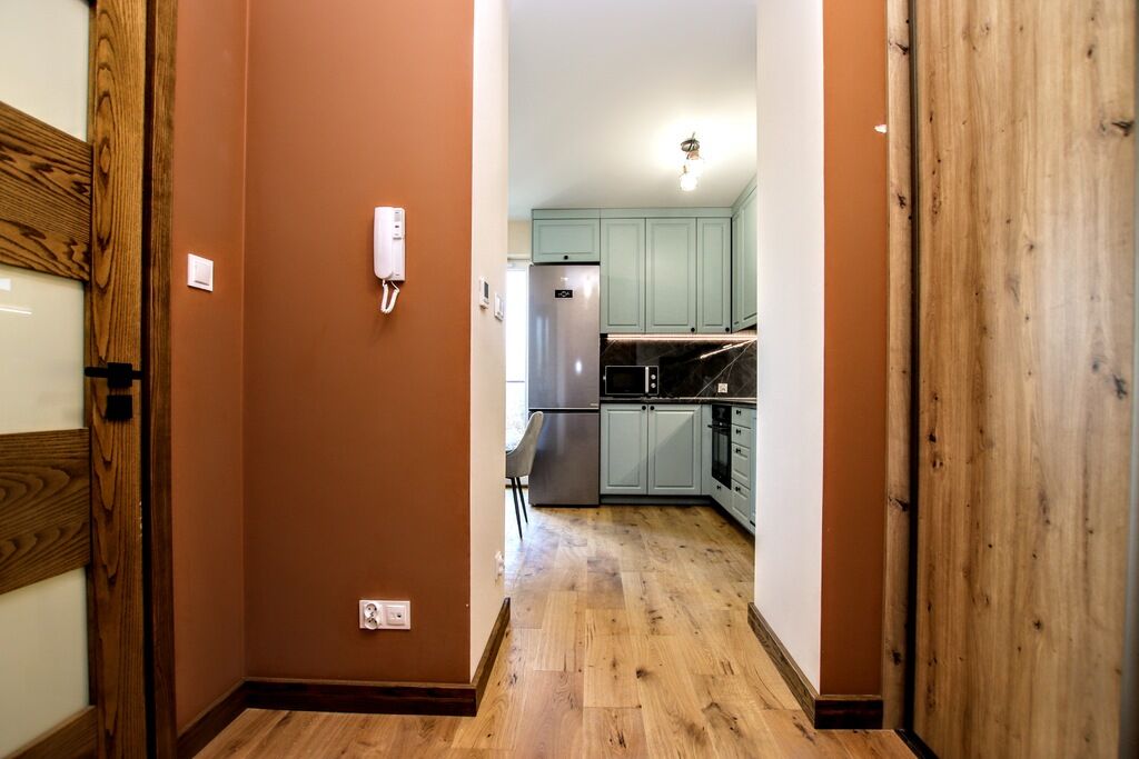 - w skład mieszkania wchodzi salon z aneksem kuchennym (17,46 m2),