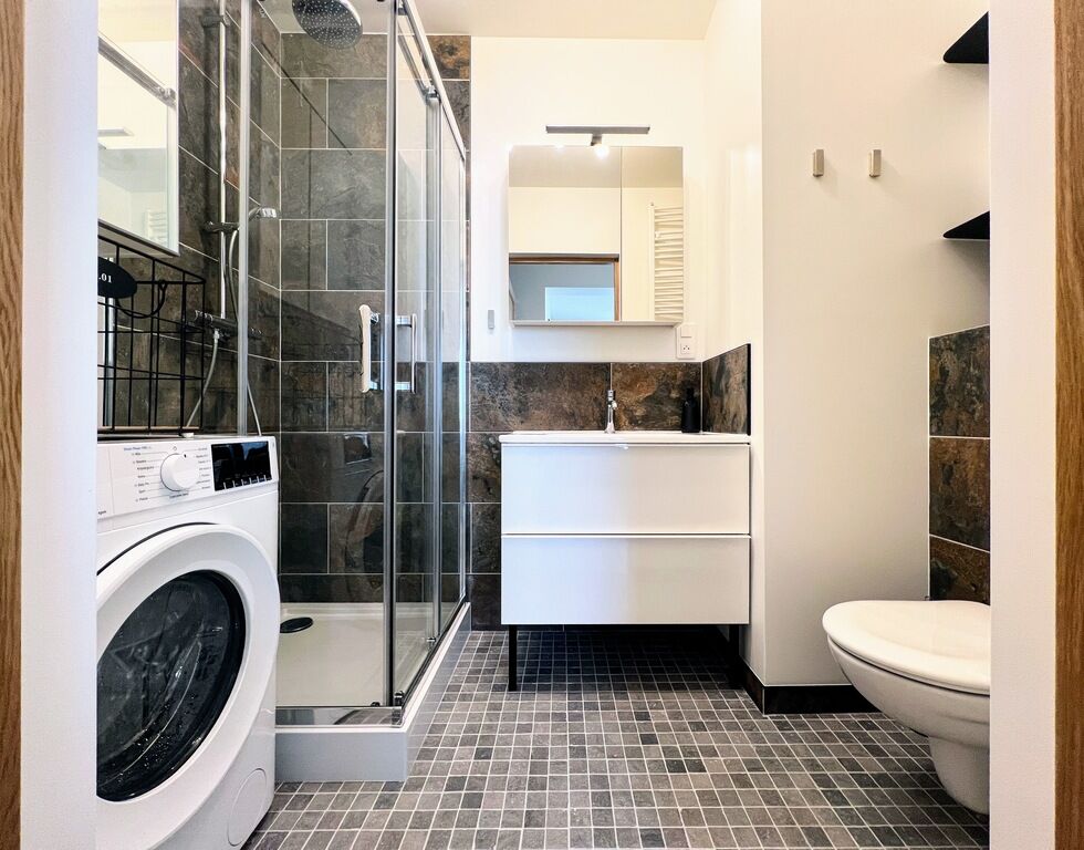 - household appliances (induction hob, oven, hood, dishwasher, washing