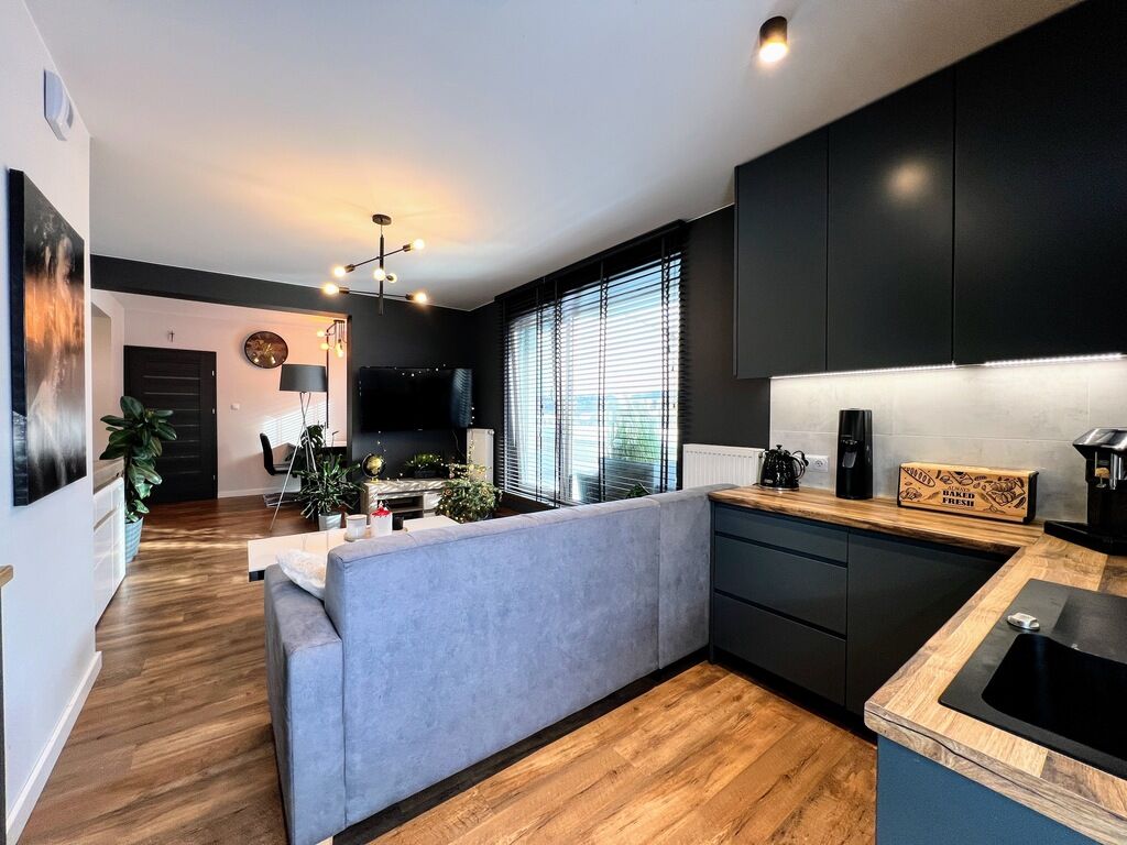 - przestronny salon z aneksem kuchennym