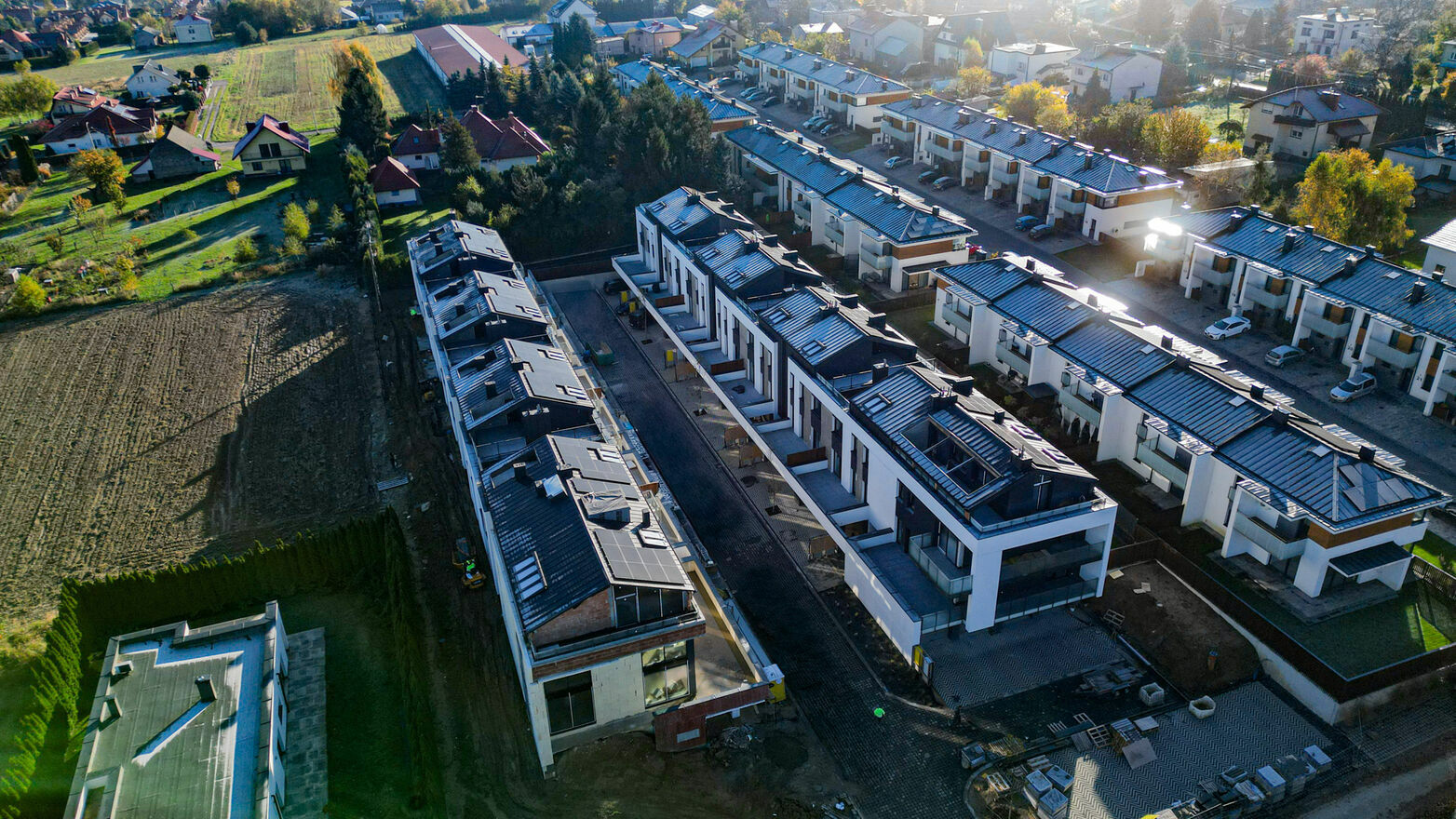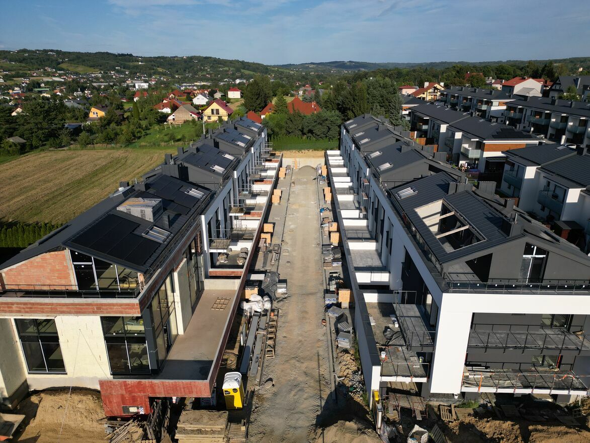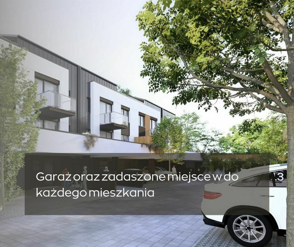 Każde mieszkanie posiada prywatny ogródek lub taras, idealny do relaksu na świeżym powietrzu. Dodatkowym atutem są zadaszone miejsca postojowe przed garażami wbudowanymi oraz strefa usługowa na osiedlu (sklep, kawiarnia, przestrzeń integracji społecznej), która podnosi komfort codziennego funkcjonowania.