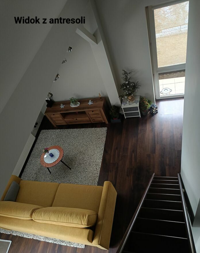 Dwupoziomowe: poziom 1 - 34 M2 + antresola - sypialnia 10 M2.