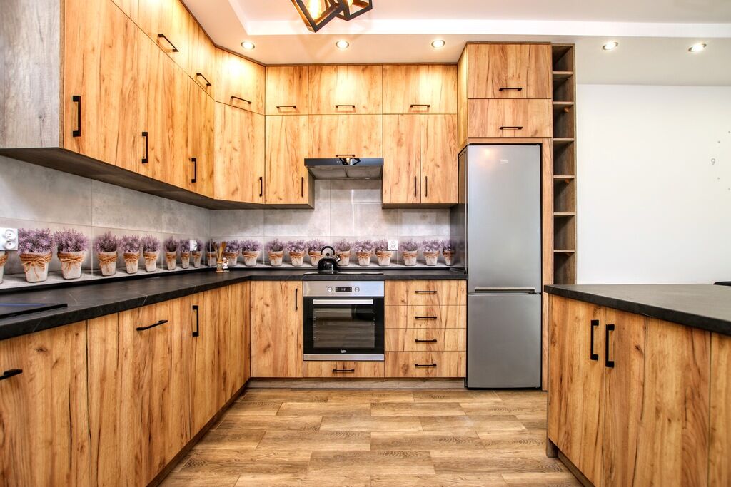 - electronics and household appliances (induction hob, oven, hood,