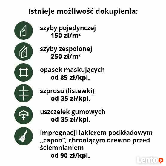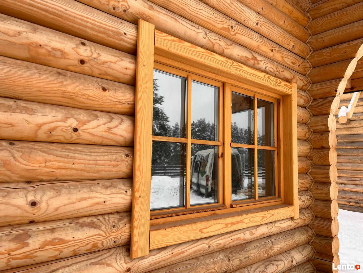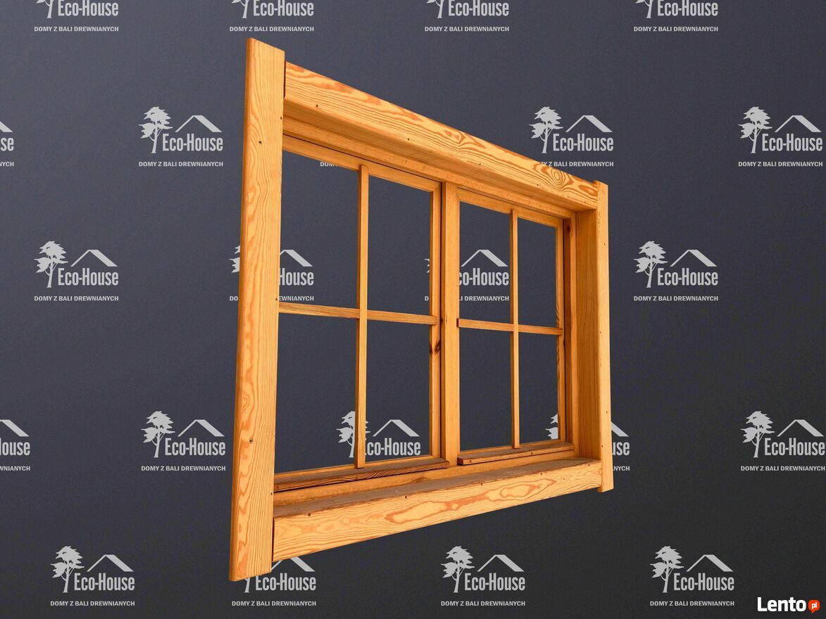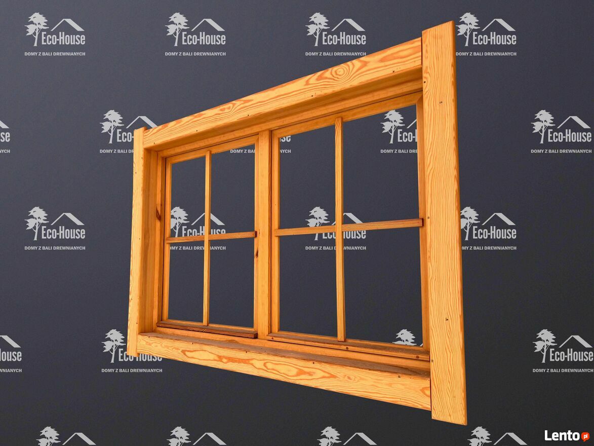 Oferujemy piękne okno drewniane dwudzielne stałe wraz ze szprosem i opaską.Okno drewniane wykonane z drewna sosnowego suszonego komorowo, zaimpregnowane środkiem Fobos M4.