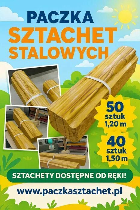 PACZKA SZTACHET stalowych ZŁOTY DĄB 1.50m i 1.20m na ogrodze