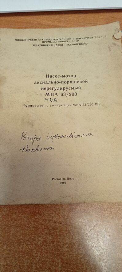 Pompa hydrauliczna Rosyjska MNA 63/200 pracowała we wtryskarce CHMIELNICKI od 1991 roku jako II pompa do ruchów równoległych używana była sporadycznieposiadam instrukcję po ukraińsku/rosyjsku