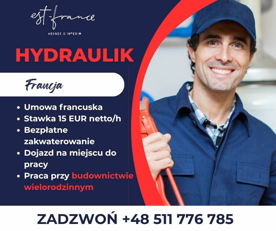 Francuskie przedsiębiorstwo specjalizujące się w instalacjach hydraulicznych, grzewczych, wentylacyjnych, klimatyzacyjnych oraz chłodnictwie przemysłowym poszukuje doświadczonych hydraulików do pracy przy budownictwie wielorodzinnym.