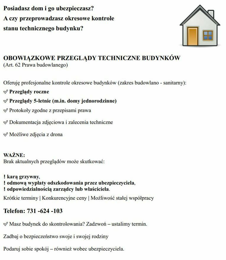 Masz budynek do skontrolowania? Zadzwoń – ustalimy termin.