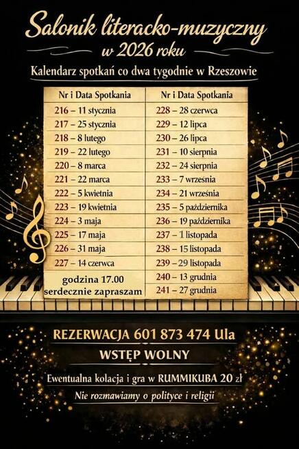 W Rzeszowie od 2017 roku co dwa tygodnie organizuję spotkania na których gram na pianinie utwory Chopina, Beethovena, ...