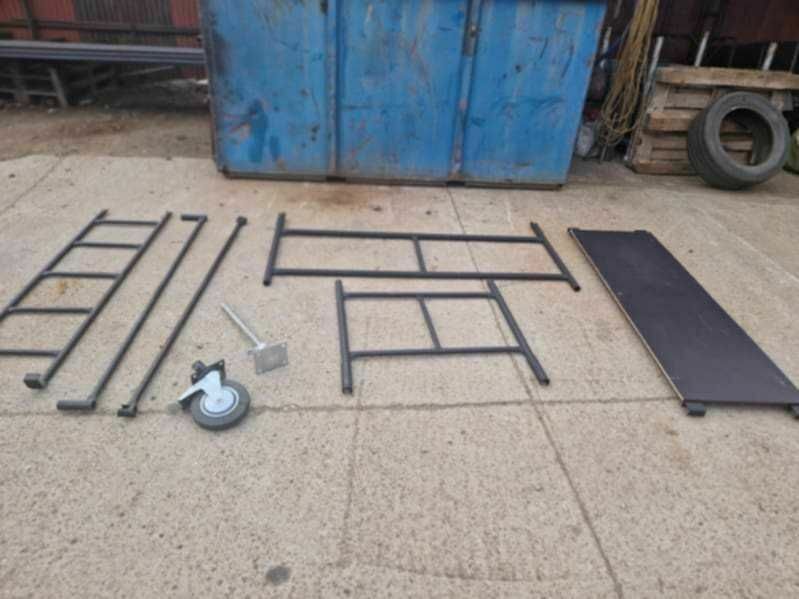 Rusztowanie budowlane z Warszawy - tania dostawa. Zestaw nowych elementów rusztowania, w tym drabiny, koła stopy poręcze i inne akcesoria.Produkt idealny dla firm budowlanych lub osób prowadzących prace remontowe. Sprawdź ofertę i skontaktuj się w celu uzyskania szczegółowych informacji 785,847,600