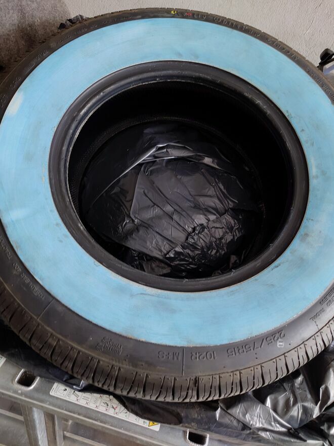 Sprzedam dwie opony praktycznie nowe Kontio Classic 225/ 75 R15 z bialym pasem 76 mm.Marek