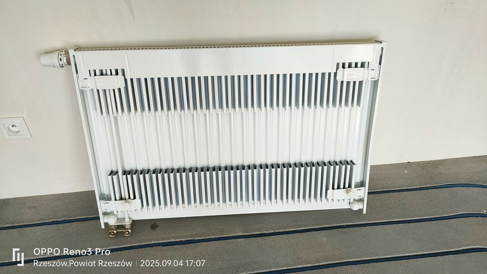 Sprzedam 4 kaloryfery (białe) do mieszkania firmy RADSON z podłączeniem dolnym (INTEGRA)wraz z zamontowanymi głowicami termostatycznymi Trinnity M30x1.5 (biała) oraz z zestawem zawieszeń ściennych.