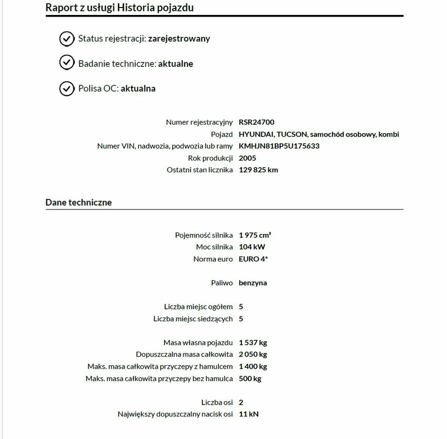Sprzedam Hyundaia Tucsona 2005r silnik 2.0. Samochód sprawny. OC ważne do 14-03-2026 i przegląd ważny do luty 2026r.Przebieg około 131 000 (tak plus minus)