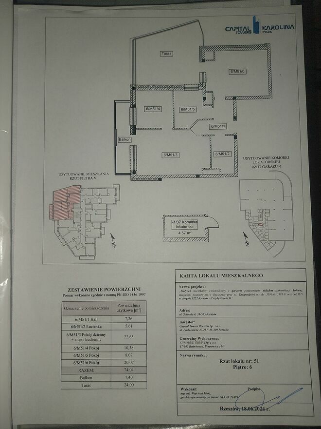 • komórka lokatorska – 4,57 m² (w cenie mieszkania);