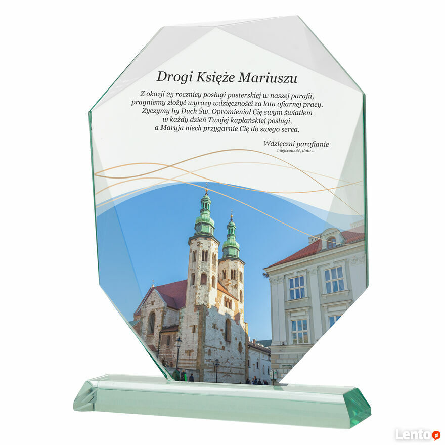 Szklana statuetka z personalizacją to wyjątkowy i elegancki upominek, który doskonale sprawdzi się jako pamiątka dla Księdza, Proboszcza lub Kapłana. Idealna na jubileusz, rocznicę święceń, pożegnanie, a także jako podziękowanie za posługę i zaangażowanie podczas ważnych uroczystości parafialnych, takich jak I Komunia Święta, bierzmowanie czy pielgrzymka.